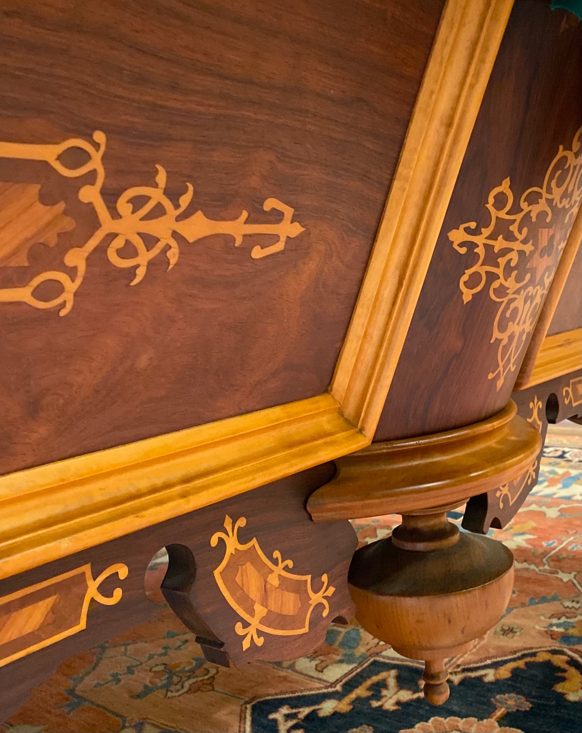 Inlaid with California Laurel, Burl Ash, French Walnut, Rosewood, Birds-Eye Maple and Tulip Woods.